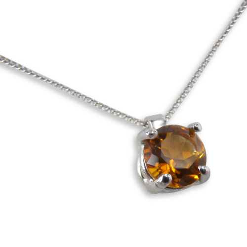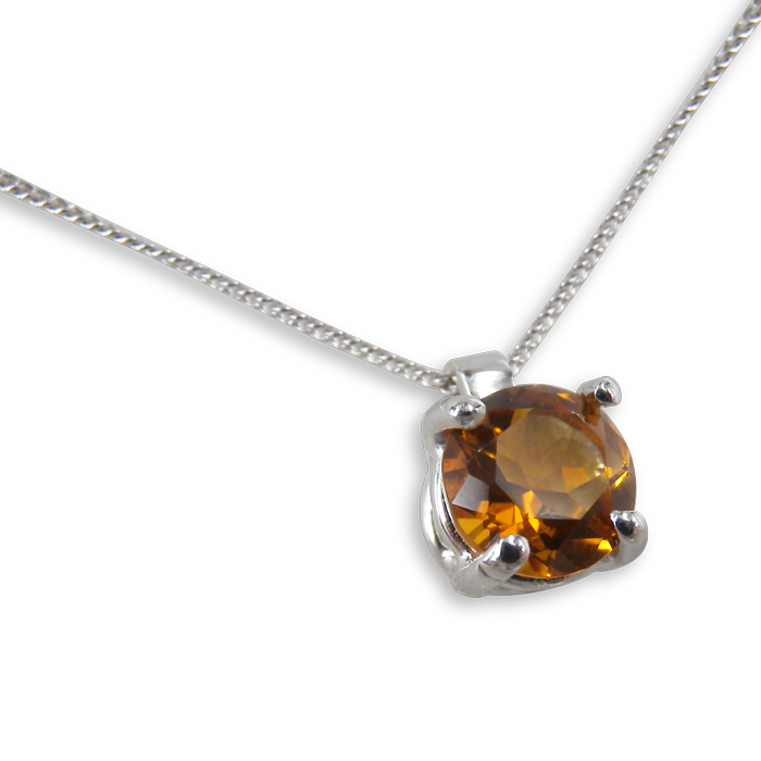 Il ciondolo è eseguito a mano in oro bianco 18kt Ethical Gold Fairmined. La pietra incastonata è un quarzo citrino Stonethic.